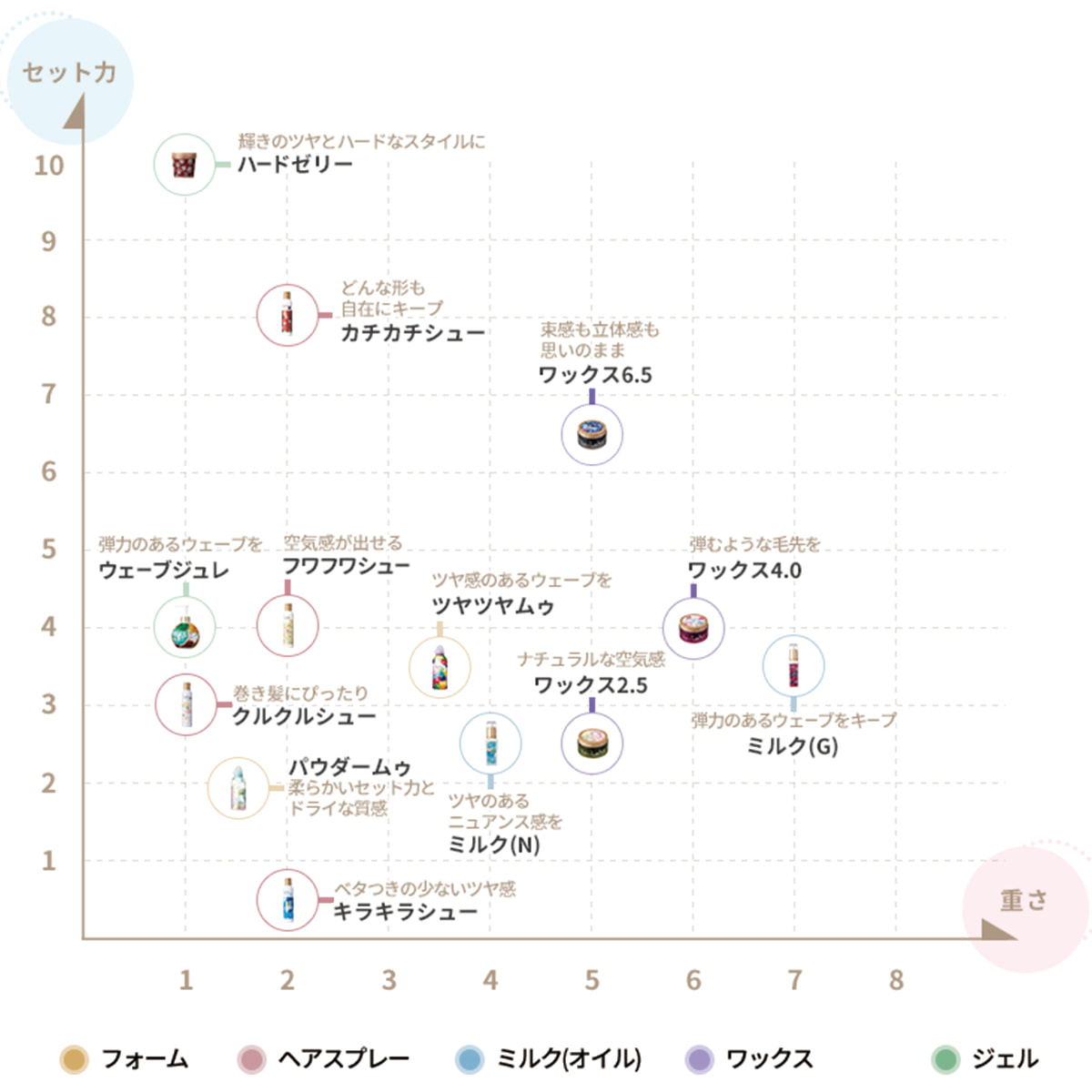 ほどよい軽さとキープ力で、弾むような毛先の動きを表現。